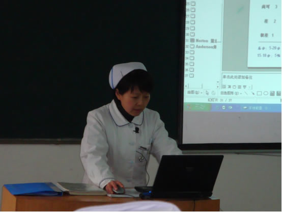 3月31日下午,杨惠秋老师在护理116班为大家展示了一堂成功精彩的公开课---护理学。杨老师扎实的基本功、自然可亲的教态、准确有韵律的表达、漂亮的板书、生动的例证、丰富有效的教学活动、制作精良的课件及课件的合理运用、较强的课堂调控能力,受到听课老师们们的较高的评价。