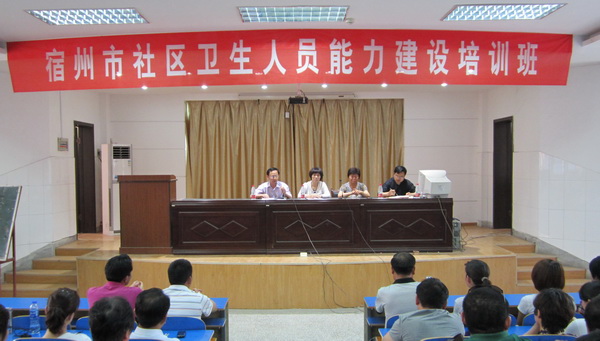 为全面落实国家基本公共卫生服务,加快推进全市社区卫生服务机构能力建设,建立一支以全科医师为骨干的高素质的社区卫生服务队伍,强化全科医学理念,规范提供服务。我市2012年社区卫生人员服务能力建设培训班于2012年5月16日在宿州卫校开课并举行了隆重的开班典礼。各县区共计选派了368名社区卫生人员参加了培训。本次培训开设全科医生和预防保健人员培训和注册护士培训两个班。