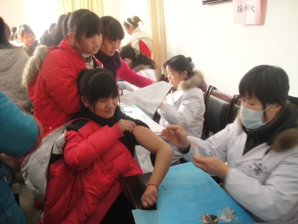 2010年1月6日,宿州市疾控中心工作人员来到宿州卫校,为学生进行了甲型H1N1流感疫苗的接种工作。学校领导对接种工作高度重视,指定学生科负责组织实施。根据文件要求,制定了《宿州卫校甲型H1N1流感疫苗接种预案》,接种坚持“知情同意、自愿、免费”的原则。