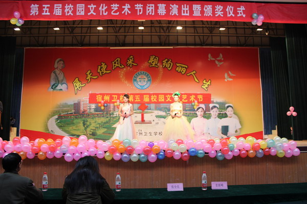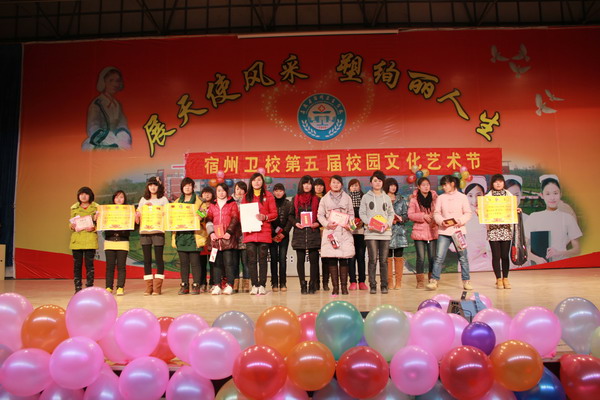2011年12月30日下午4:30分,宿州卫校以“养成良好习惯、培养健康人生”为主题的第五届校园文化艺术节闭幕式颁奖仪式暨元旦晚会在校礼堂隆重举行。校党委书记武平、学生科科长孙宗波、保卫科科长周庭化到会并颁奖,全校1000多名学生代表参加了此次晚会。