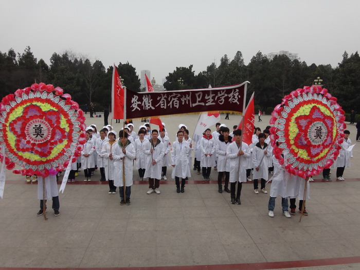 在清明节即将来临之际,为了纪念传统节日,缅怀先烈、弘扬中华民族优秀传统文化,推动“我们的节日·清明”活动广泛开展,2012年3月29日上午,宿州卫校70余名师生代表前往市雪枫烈士陵园开展清明节祭扫烈士墓活动。