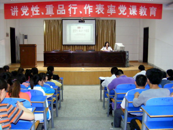 为加强党员干部党性修养,2012年6月7日下午4时50分,学校党委在校学术报告厅举行“讲党性 重品行 作表率”主题党课活动。来自宿州卫校的二百余名不同年级、不同专业的入党积极分子、预备党员及思想要求积极进步申请入党的优秀学生和全体在职党员参加了本次的党课学习。