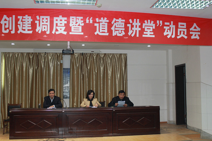 会议由校纪委书记朱新豪主持,全校中层干部、学科主任、教研组长、班主任及各班班长共120余人参与会议。会上,校党办室主任杨俊山宣读了《宿州卫校“道德讲堂”实施方案》;明确了道德讲堂建设的指导思想、工作目标、组织领导、内容形式和工作要求。校党委书记武平做了动员讲话。
