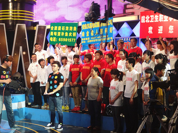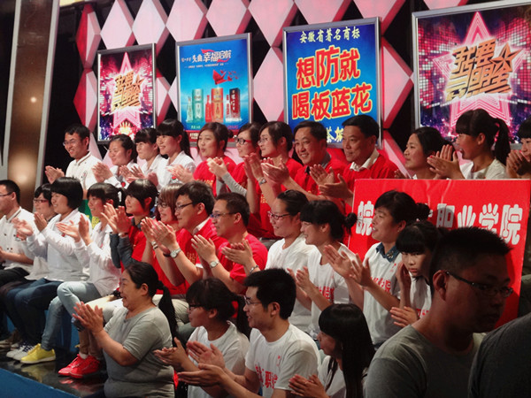 本次活动学校领导给予了很高的重视,李德军校长亲自过问。安排院团委书记张全亮带队,精心挑选参加节目录制的学生。师生一行早晨6点从宿州坐大巴出发,中午11点左右抵达合肥,稍事休息后即投入节目录制工作中去。从下午12:40到15:50,在长达三个多小时的节目录制中,我校师生始终积极投入,与节目组、参演选手、主持人配合良好,掌声热烈,笑容灿烂,精神状态良好;“米兰app下载苹果手机安装欢迎您”的标语牌在五彩灯光的闪烁下,格外夺目,师生们身穿印有学院名字的T恤衫,用热情和活力向现场和电视机前的观众充分展示了我院学子青春、健康、美丽的一面,向全省人民展示了学院师生积极向上的精神风貌。