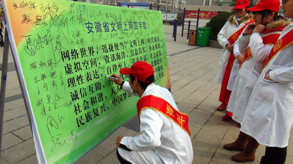 活动还未开始,闻讯前来义诊的市民就涌了过来,志愿者们分工协作,积极行动,细心地为市民们测量血压,宣传卫生保健知识,同时耐心解答市民们提出的各种健康问题。尽管志愿者们已是多次参加义诊活动,但他们服务的热情丝毫未减。