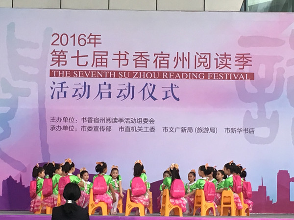 启动仪式上,市直机关党员干部代表宣读了“倡导全民阅读,建设书香宿州”倡议书。现场还举行了向留守儿童代表、优秀学生代表、城市优秀农民工代表及智慧妈妈家庭代表的爱心赠书活动。