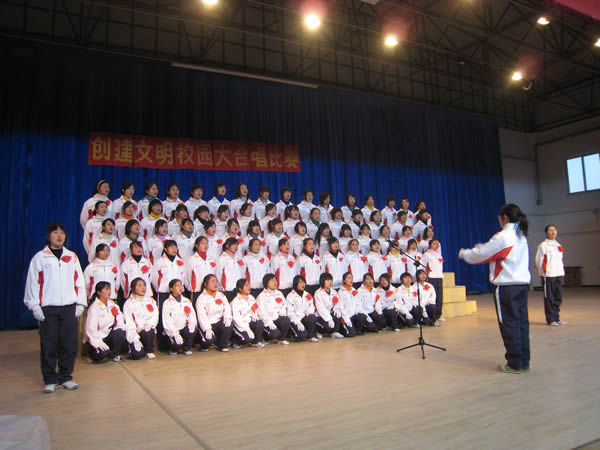 第二届校园文化艺术节继续由该校团委举办,目的就是要使全校师生在此平台上展现自我、促进交流、锻炼才艺、提高审美情趣,全面掀起校园文化活动的热潮。本次大合唱比赛以“创建文明校园”为主题,由团委组织,校《安徽青年报》学生记者站承办。在全校一年级29个班级中开展,充分调动了广大同学的班级荣誉感和以校为家的主人翁意识,同时也培养了同学们的团队协作精神和竞争意识。活动得到校领导、班主任和同学们的高度重视,各班级利用课余时间选定曲目、排练、布置队型,校园里到处充满了激情洋溢的歌声。决赛进行得紧张激烈,《中国,中国,鲜红的太阳永不落》、《爱我中华》、《众人划浆开大船》、《保卫黄河》、《精忠报国》等歌曲慷慨激昂,表达了卫校学子对祖国的强烈热爱;《爱的翅膀》、《祈祷》、《感恩的心》、《让世界充满爱》则把观众带进爱的温柔世界,让大家学会感恩,懂得珍惜。整齐的服装、变化的队型、激情洋溢的指挥结合在一起,使台下师生们深受感动,现场掌声不断。最后,伴随着轻快的旋律,大合唱《相亲相爱的一家人》为本次比赛划下圆满的句号。