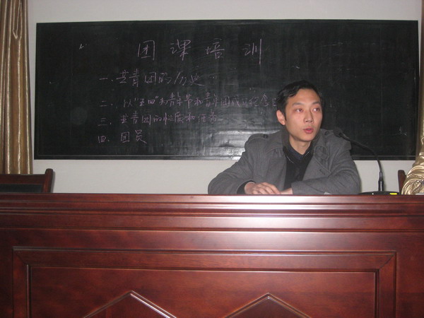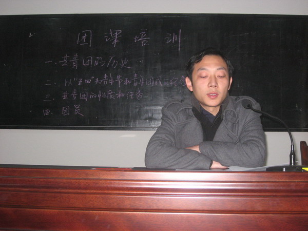 为了帮助学校广大青年团员同学更好地了解中国共青团,树立正确的人生观,价值观,能更好地适应社会的需要,顺利地成长成才。宿州卫校团委于2009年11月23日在学术报告厅举办了有关共青团知识的讲座。主讲人是团委副书记张锋老师。