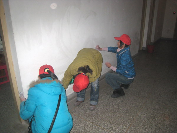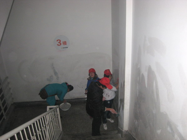 校园里“告别不文明行为、做文明学生”的活动热火朝天的开展着。2009年12月8日,在宿州卫生学校的图书馆里,二十多名年轻“环卫工人”挥动抹布、砂纸,认真清理墙面上的脚印、泥灰等污渍,所擦之处“唰唰”作响,他们不是普通的环卫工人,而是来自宿州卫生学校团委与激扬文艺社的学生志愿者。