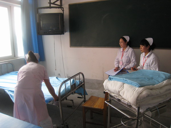 比赛分为铺备用床,无菌技术基本操作方法,皮内注射法。参赛选手都为这次比赛做好了充分的准备,比赛在同学们的精彩表演中结束。