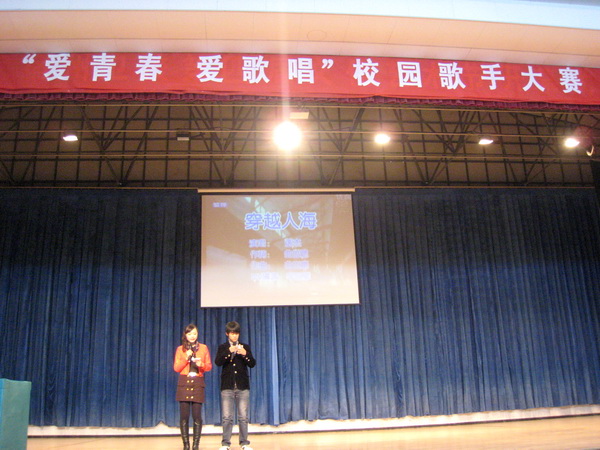 为了丰富同学们的业余生活,拓展学生们的生活情趣,宿州卫校第四届文化艺术节之“爱青春 爱歌唱”歌手大赛决赛于2010年12月8日晚,在校礼堂拉开帷幕!26名同学成功晋级的选手站上了今晚决赛的舞台。