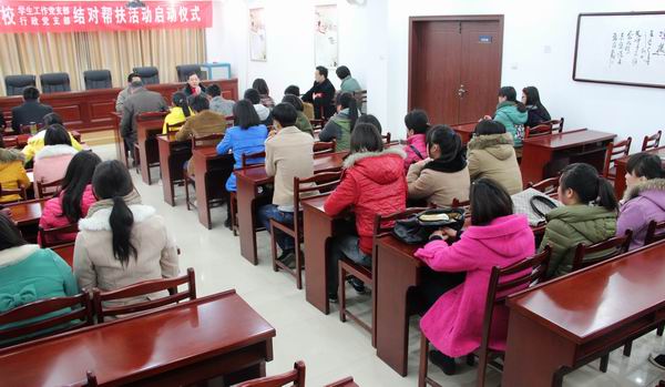 为深入贯彻落实开展“党的群众路线教育实践活动”,按照学院党委制定的活动方案,学生工作党支部、行政工作党支部开展与困难学生结成帮扶对子,深入到学生中间,贴近学生,面对面听取意见,问需帮扶,答疑解惑、为学生排忧解难。2014年3月12日下午,学生工作党支部书记张锋、行政工作党支部书记赵军带领支部党员,药剂1301班、检验1301班、高职助产1101班、助产1301班40多名同学参加了帮扶座谈会。院党委办公室主任杨俊山到会指导此项活动的开展。