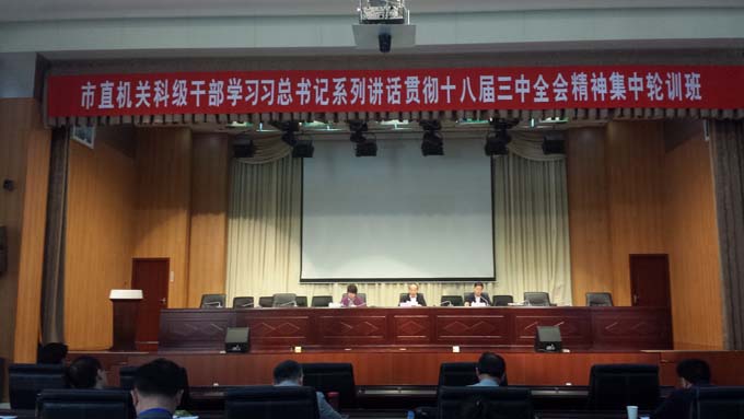 市直机关科级干部学习习总书记系列讲话,贯彻十八届三中全会精神第一期集中轮训于11日下午结束。 来自全市市直机关的297多名科级干部参加培训,我校冯正平、姜新峰两位科长也参与其中。