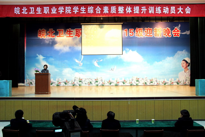综合素质是一个人知识水平和道德修养的体现,是一种稳定的生理、心理和外部形态特征,更是大学生适应社会和职场的基础。为了使同学们具有过硬的身体素质,端庄的外部形态和良好的适应能力,皖北卫生学院于2015年11月16日晚上,在大礼堂召开了“皖北卫生学院学生综合素质整体提升动员大会”。大会由教务处处长姜新峰同志主持,院长李德军、纪委书记贾爱玲、副院长胡月琴、等学院领导出席了动员大会,学生处处长孙宗波、人才中心主任陈忠、保卫科科长周廷化等部门负责人以及全体辅导员和在校大学生参加了本次会议。