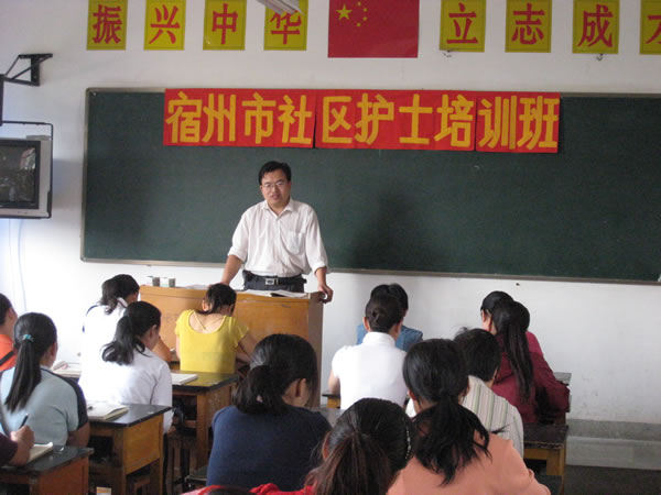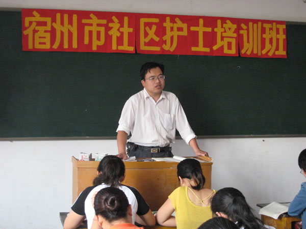 7月10日, 2007年宿州市全科医生、社区护士岗位培训班理论教学在宿州卫校开课。宿州卫校领导尹光思校长、王淑芹副校长对此次培训的理论教学与实践技能培训非常重视并对具体事项做了周密安排与部署。