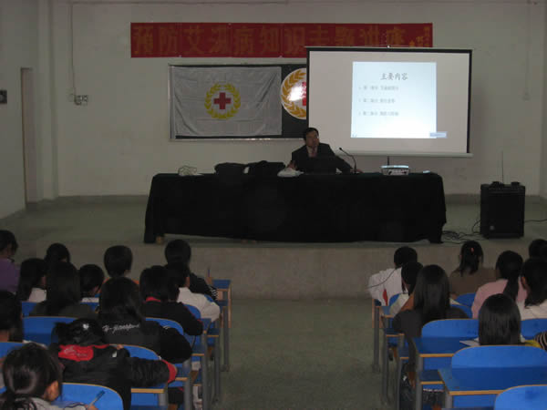 此次讲座由学校教务科副科长、公共卫生专业高级讲师田贞尚主讲,校团委书记、校红十字会秘书长张全亮主持。讲座结合学生实际,采用电脑课件的方式,深入浅出、系统生动地向广大同学宣传了艾滋病的危害、传播途径、预防措施等有关知识,精彩之处,不时赢得同学们的阵阵掌声。