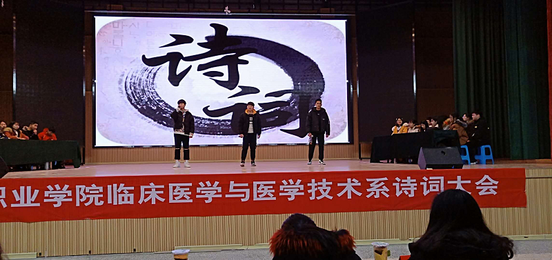 为贯彻落实学院关于我市创建“全国文明城市”工作要求,积极推进我院争创全省“文明校园”,弘扬中华古诗词文化,我院临床医学与医学技术系在2018年12月28日举行了一场“诗词大会”比赛。参加此次活动的领导及老师有临床医学与医学技术系党总支书记李炳南、团总支书记邓莉娟、生化检验教研室主任王玲玲、语文教研组马芳芳和周计红老师。全系24个在校班级共500多名学生参加并观看了此次比赛。