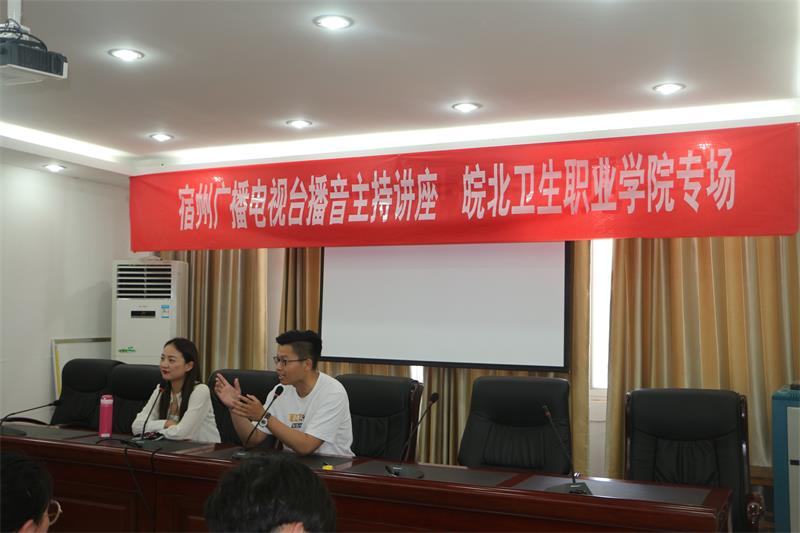5月29日下午,米兰app下载苹果手机安装团委特邀宿州广播电视台直播宿州栏目主持人刘碧瑶、交通广播台主播赛扬来我院为学子们做了《新闻采编》的主题讲座。讲座由团委书记杨海波主持,学生记者团、学生会干部以及其他100多名学子一起聆听了这一场别开生面的讲座。
