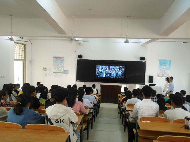 “地球似一叶扁舟,荡漾在浩瀚无垠的宇宙中。在这蔚蓝的生命之舟上,有着这样一个古老国度,它叫中国……”。会场上主持人激情澎湃的演说,配以精美的课件和视频解说,向同学们展示了新中国一代代人的励精图治和浴血奋战的历史,让同学们进一步了解伟大祖国从坎坷中一路走来的艰难历程,体会中华儿女面对困难自强不息的精神。正如艾青的诗中写到:为什么我的眼里常含泪水?因为我对这土地爱得深沉……当《我和我的祖国》音乐响起之时,全体同学都默默的起立,一起轻唱“我和我的祖国,一刻也不能分割……”