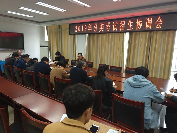 会上,学生处招就办王小蕊主任通报了2019年我院分类考试招生报名的基本情况,传达了省招生考试院和学院对2019年分类考试招生工作的总体部署,对4月12-14日现场报名的相关工作进行了任务分工。