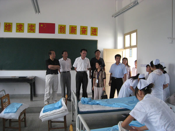9月12日上午,教育厅程艺厅长在常务副市长刘统海和市教育局长王共伟、市卫生局长杨立瑾等同志的陪同下,到宿州卫校视察指导工作。