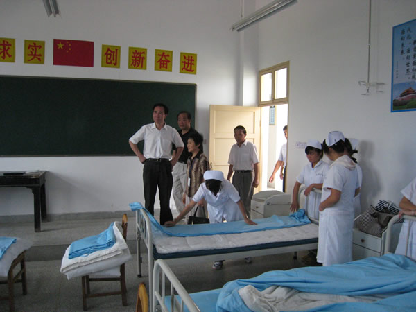 程艺厅长首先察看了宿州卫校本学期落成刚刚投入使用的4号学生公寓,对学生公寓的硬件设施、内部配置、卫生安全情况表示特别满意。随后,程厅长又来到学校餐饮大厅、超市和学校实训大楼,深入到学校正在上课的护理示教室和多媒体诊断室实地检查,程厅长兴致勃勃,一边视察一边不停向跟随在身旁的宿州卫校领导询问着学校今年的招生情况、师资配备情况和学校今后发展的思路,并认真听取了学校领导的详细汇报。