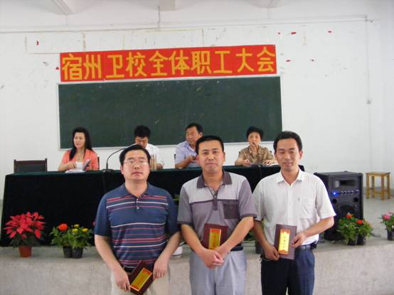 武平副校长首先宣读了《宿州卫校60周年校庆活动总体方案》,她要求,全校上下要充分认识校庆的重要意义,以主人翁的姿态,通力配合、全员参与,各方要听从指挥、协调一致,形成合力。她强调,为确保60周年校庆各项筹备工作的贯彻落实,各组要充分发挥自己的聪明才智,尽快制定出所承担任务的实施计划、落实措施、经费预算和日程安排,任务要落实到人,责任到人。武校长讲话之后,校党委副书记陈永强通报了《宿州卫校代课金和劳务费分配方案》。王校长宣布了学校对08/09学年度先进党员、先进个人及优秀班主任的表彰决定,大会在雷鸣般的掌声中给受表彰的同志颁发了荣誉证书。