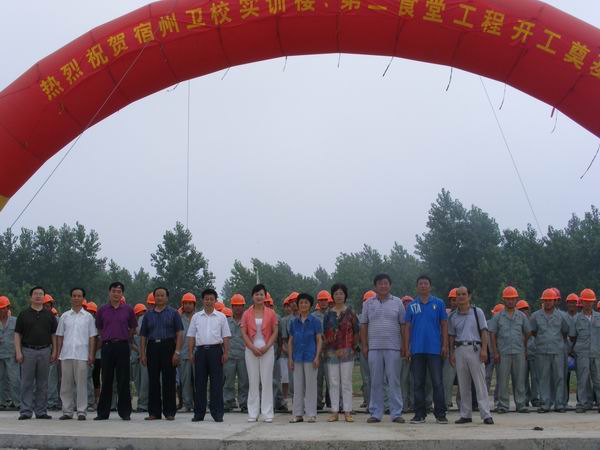 7月16日上午,宿州卫校校园内花团锦簇,彩虹门矗立,整个校园洋溢着节日的气氛,总投资2500万元的学校实训大楼、学生第二食堂工程开工典礼正在隆重举行。校领导、学校基建领导小组成员、施工方代表及施工人员共100多人参加了典礼仪式。