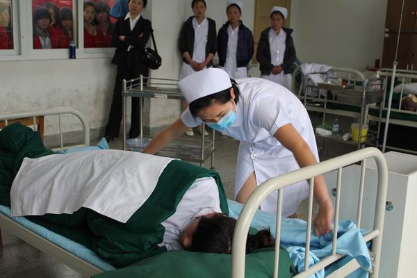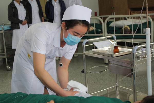 4月21号下午临行前,临床护理学科与护理教研组邀请了学校领导及部分科室、学科负责人主任观看了代表队的汇报表演。表演内容有无菌操作、静脉输液、卧有病人床换单、输氧、急救等护理基本操作。