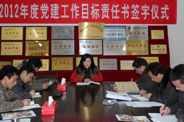 2012年3月9日下午,宿州卫校2012年度党员目标管理责任书签字仪式在会议室举行,参加会议的有校党委武平书记及各个支部书记、支委。