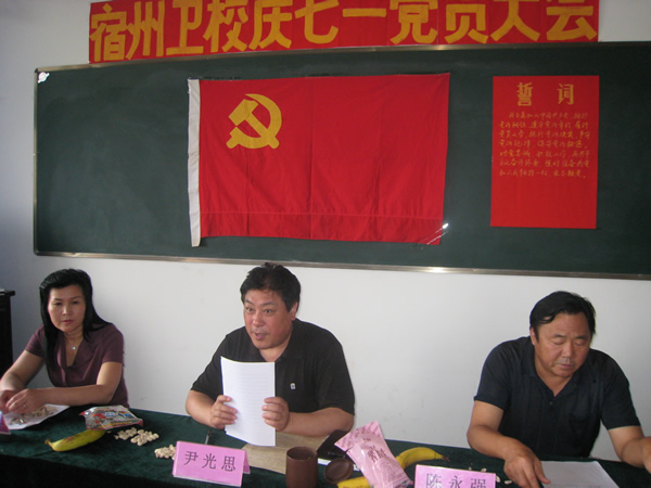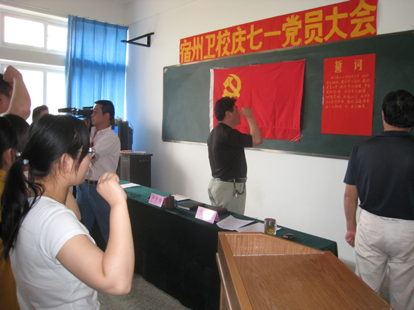 2008年6月27日下午宿州卫校在党团活动室举行庆祝中国共产党成立87周年大会,近60名在职党员和离退休党员到会参加。
