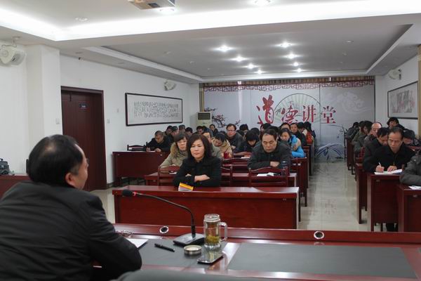 2014年2月25日下午,根据全市群众路线教育活动规定动作安排,米兰app下载苹果手机安装中层以上干部和全体党员在一楼会议室参加党课学习,校长李德军作题为《中国特色社会主义理论形成条件》的学习讲座。