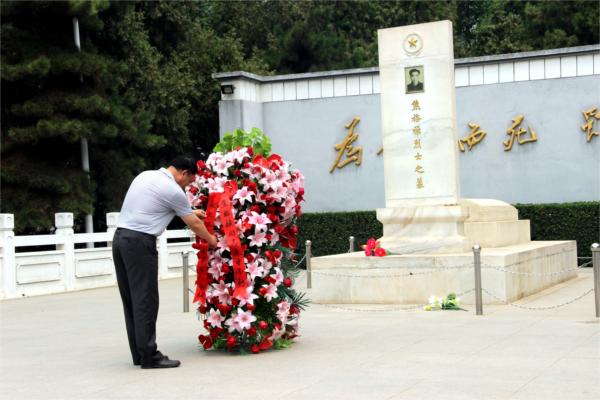 在焦裕禄陵墓前,学院领导李德军代表学院干部党员敬献花篮,全体党员干部向焦裕禄同志三鞠躬并绕陵一周,表达大家对党的好干部焦裕禄同志的崇敬之情。